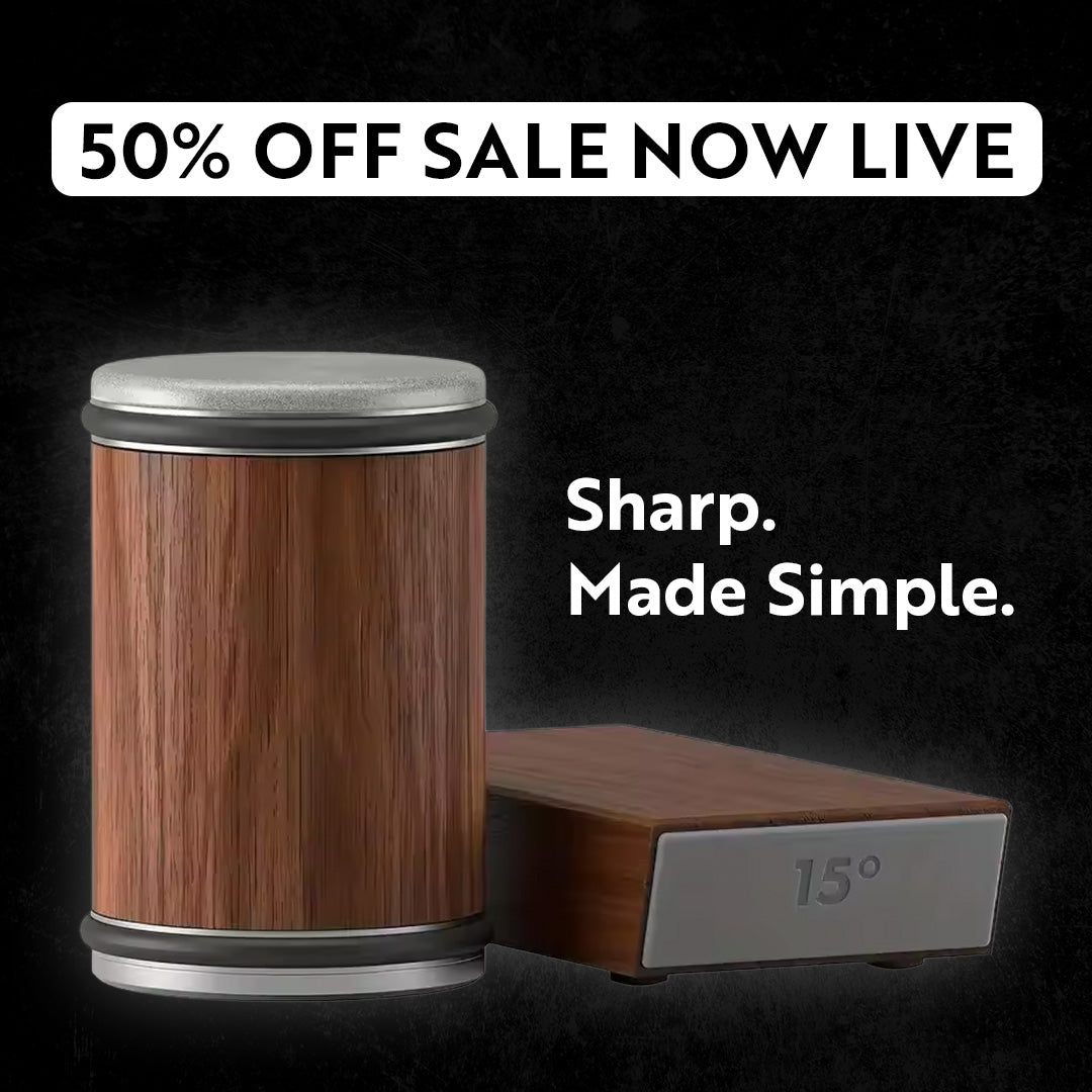 Our rolling sharpener uses fixed 15° and 20° guides and industrial-grade diamond to turn any knife into a pro-level cutter, fast, clean, and repeatable.
